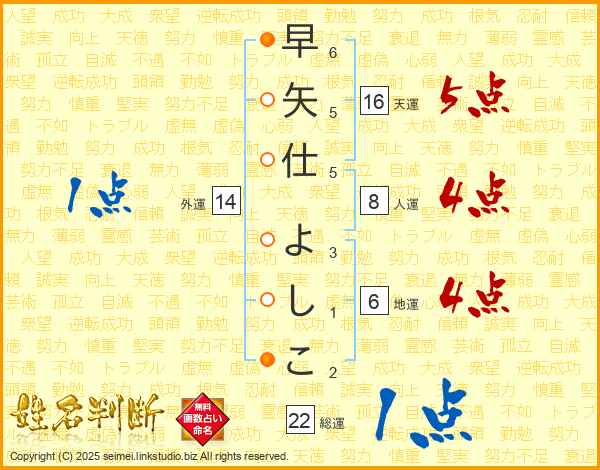 早矢仕よしこさんの総運は22画の1点!