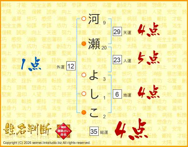 河瀬よしこさんの総運は35画の4点!