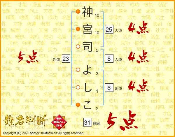 神(10画)宮(10画)司(5画) よ(3画)し(1画)こ(2画)