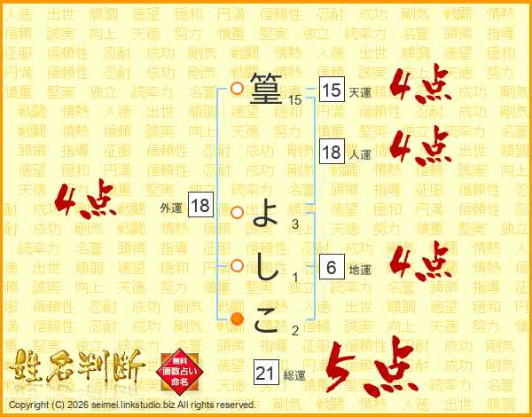 篁よしこさんの天運は15画の4点!