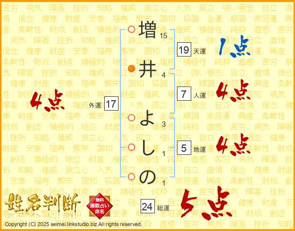 増(15画)井(4画) よ(3画)し(1画)の(1画)