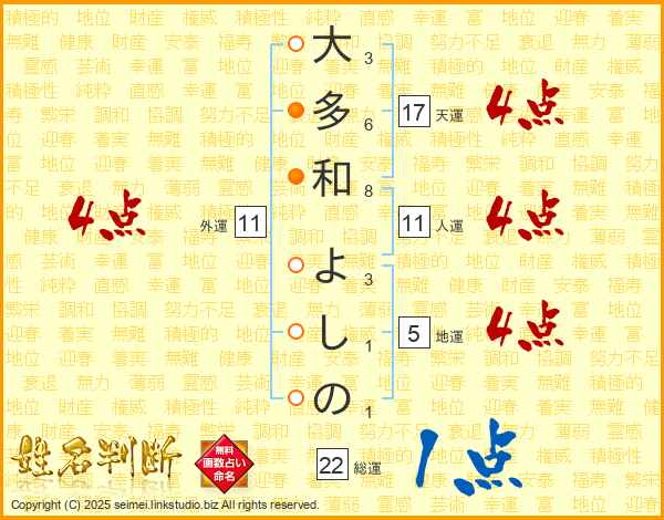 大(3画)多(6画)和(8画) よ(3画)し(1画)の(1画)