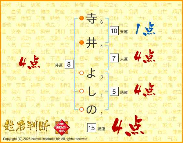寺(6画)井(4画) よ(3画)し(1画)の(1画)