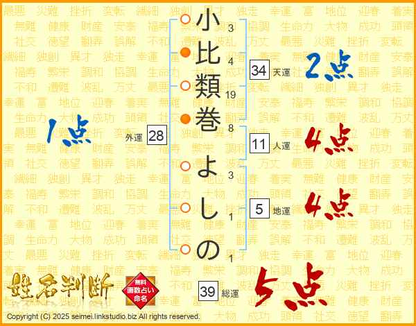 小(3画)比(4画)類(19画)巻(8画) よ(3画)し(1画)の(1画)