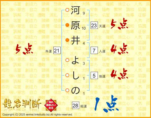 河原井よしのさんの総運は28画の1点!