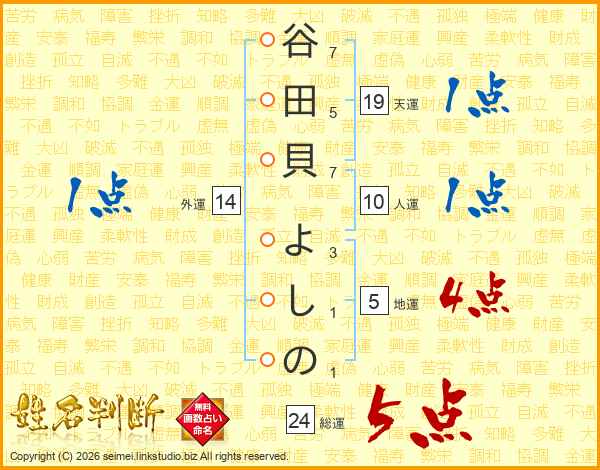 谷田貝よしのさんの総運は24画の5点!