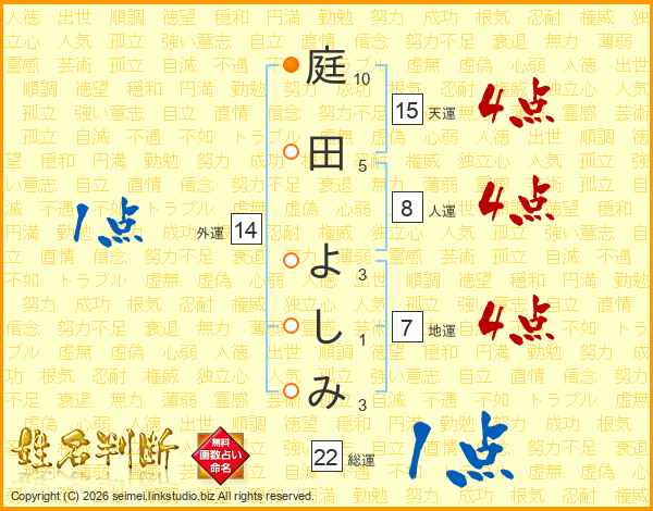 庭田よしみさんの総運は22画の1点!