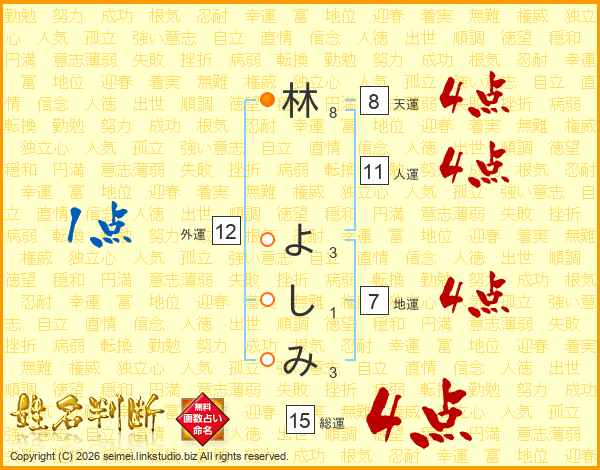 林よしみさんの総運は15画の4点!