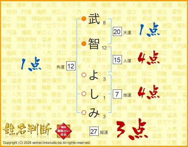 武(8画)智(12画) よ(3画)し(1画)み(3画)