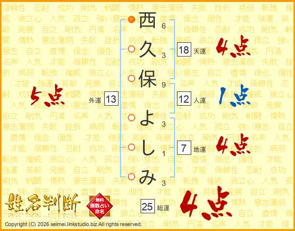 西久保よしみさんの総運は25画の4点!