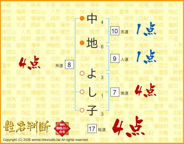 中地よし子さんの総運は17画の4点!