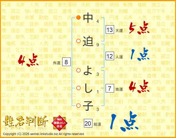 中迫よし子さんの天運は13画の5点!