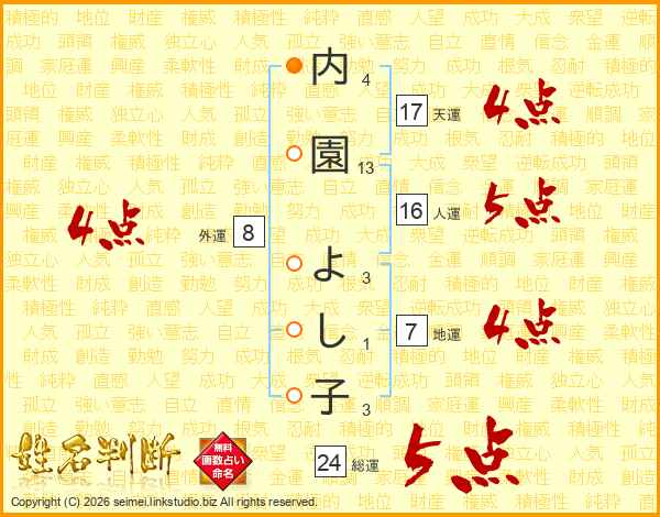 内園よし子さんの天運は17画の4点!