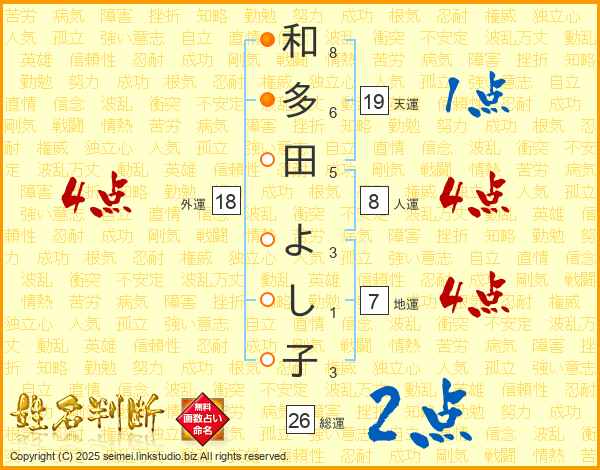 和多田よし子さんの人運は8画の4点!