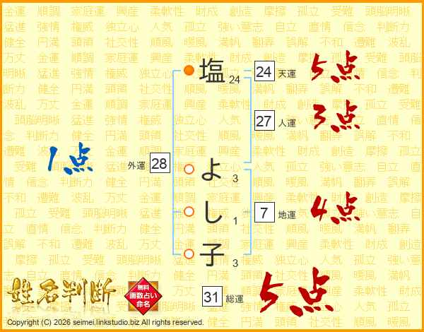 塩よし子さんの総運は31画の5点!
