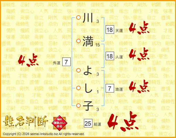 川満よし子さんの総運は25画の4点!