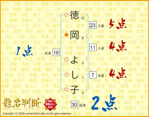 徳岡よし子さんの総運は30画の2点!