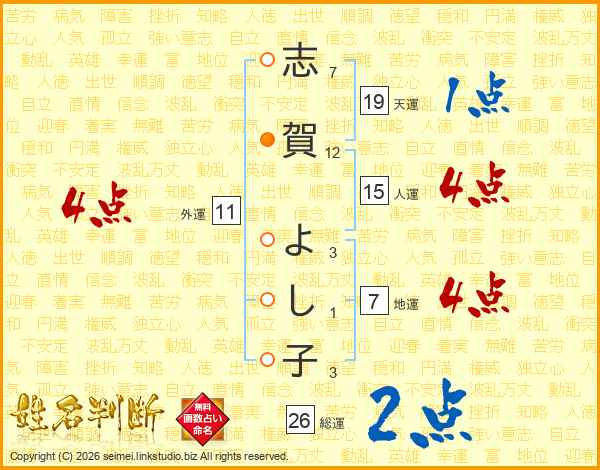 志賀よし子さんの地運は7画の4点!