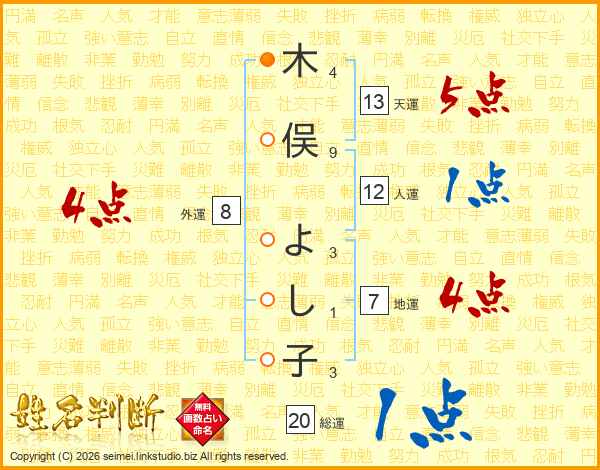 木俣よし子さんの天運は13画の5点!
