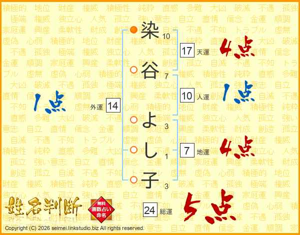 染谷よし子さんの外運は14画の1点!