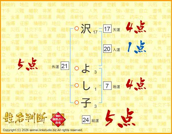 沢よし子さんの天運は17画の4点!