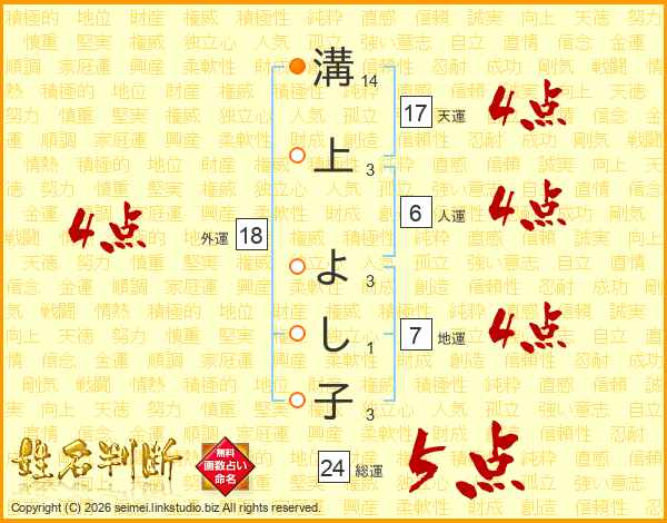 溝上よし子さんの天運は17画の4点!