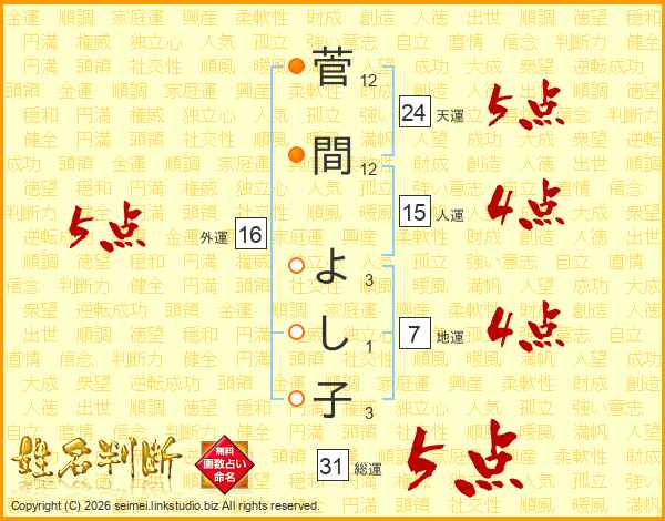 菅間よし子さんの総運は31画の5点!