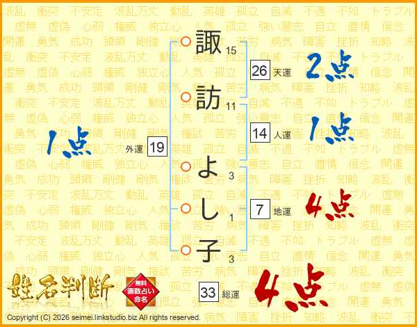 諏訪よし子さんの総運は33画の4点!