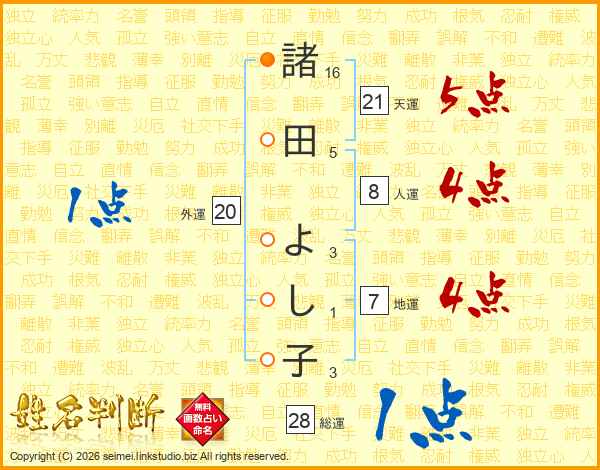 諸田よし子さんの総運は28画の1点!