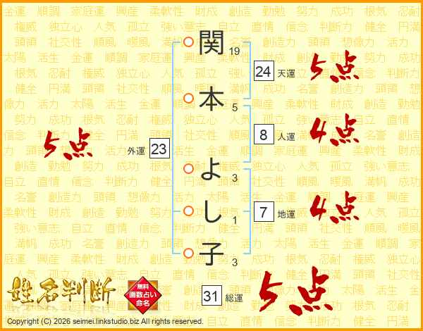関本よし子さんの総運は31画の5点!