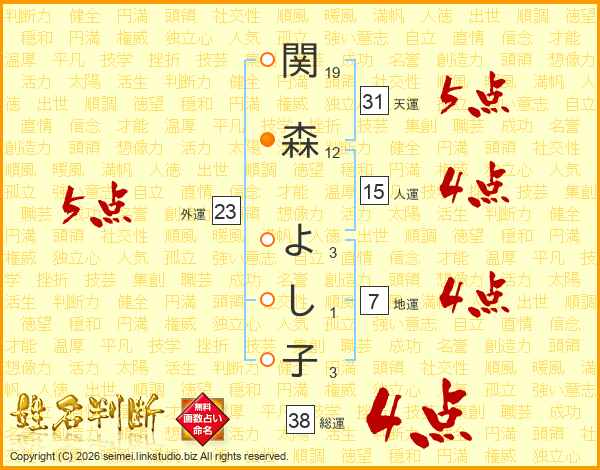 関森よし子さんの総運は38画の4点!