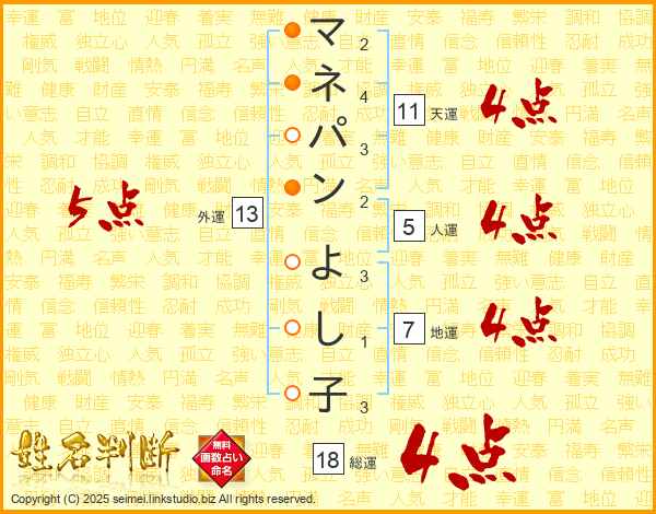 マ(2画)ネ(4画)パ(3画)ン(2画) よ(3画)し(1画)子(3画)