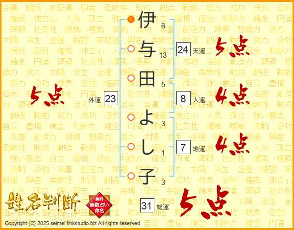 伊与田よし子さんの総運は31画の5点!