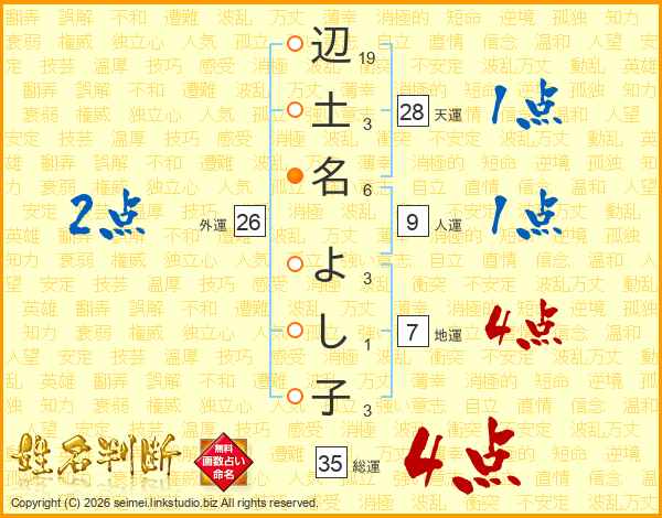 辺土名よし子さんの地運は7画の4点!