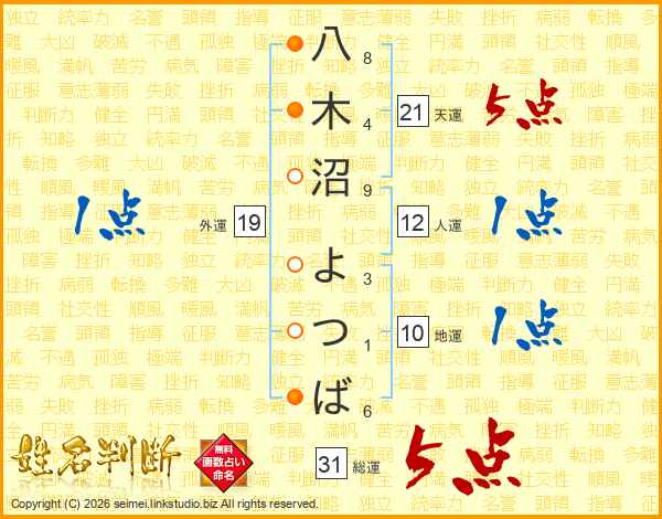 八木沼よつばさんの総運は31画の5点!
