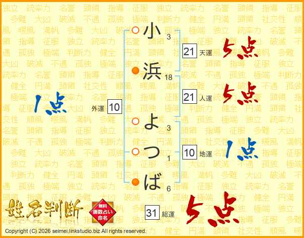 小浜よつばさんの総運は31画の5点!