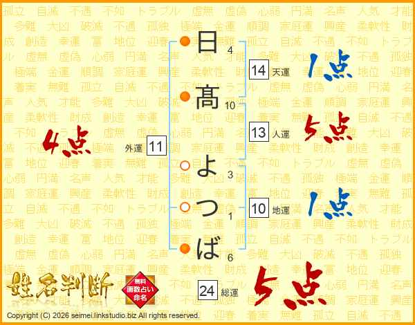 日(4画)髙(10画) よ(3画)つ(1画)ば(6画)