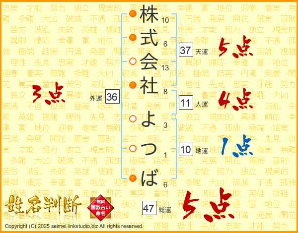 株式会社よつばさんの総運は47画の5点!