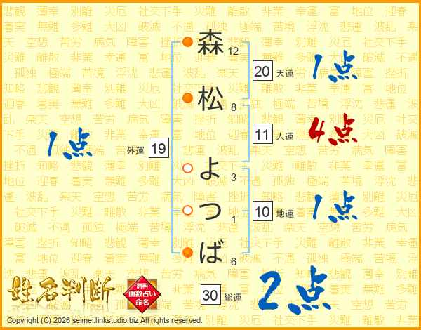 森松よつばさんの総運は30画の2点!
