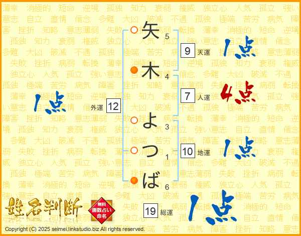 矢(5画)木(4画) よ(3画)つ(1画)ば(6画)