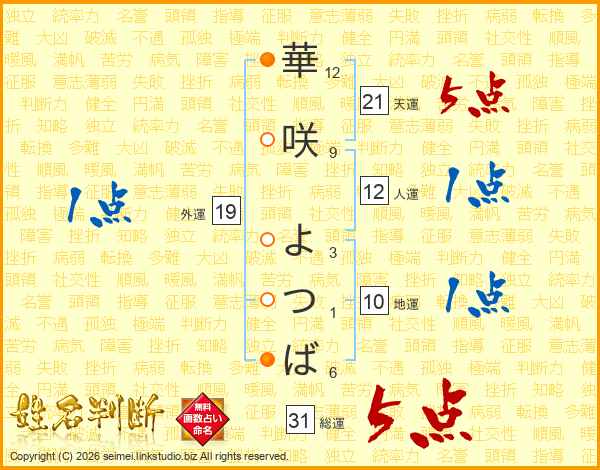 華咲よつばさんの総運は31画の5点!
