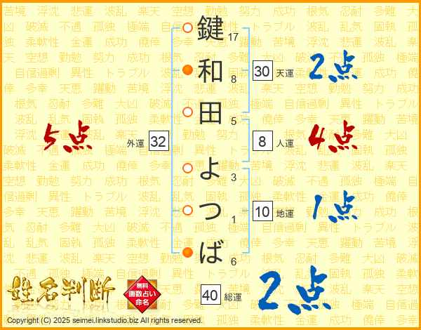 鍵和田よつばさんの外運は32画の5点!