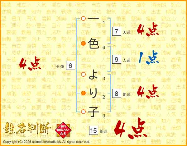 一色より子さんの総運は15画の4点!