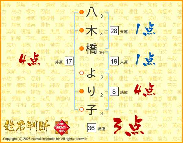 八木橋より子さんの総運は36画の3点!
