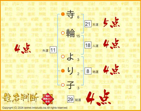 寺(6画)輪(15画) よ(3画)り(2画)子(3画)