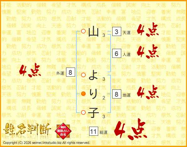 山より子さんの総運は11画の4点!