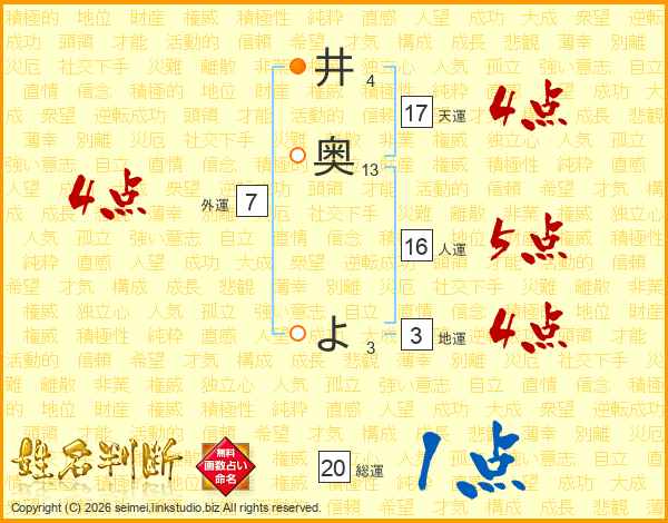 井奥よさんの天運は17画の4点!
