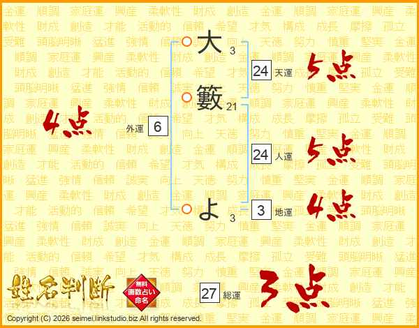 大籔よさんの総運は27画の3点!