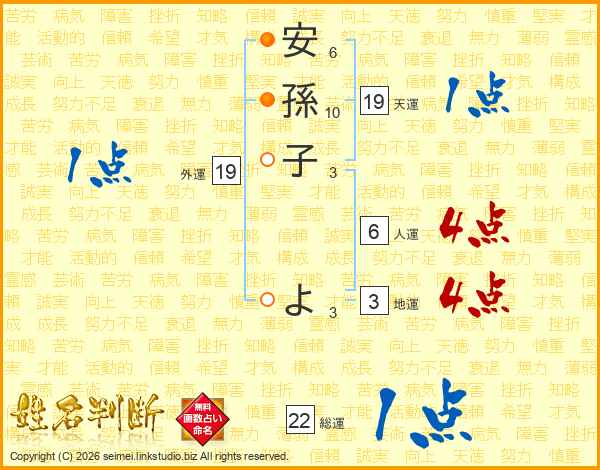 安孫子よさんの総運は22画の1点!