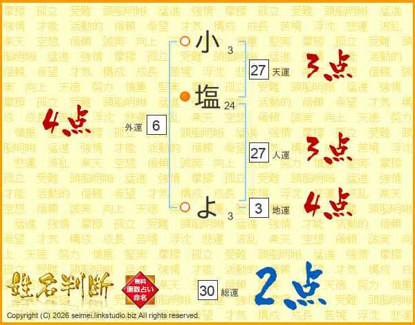 小塩よさんの天運は27画の3点!